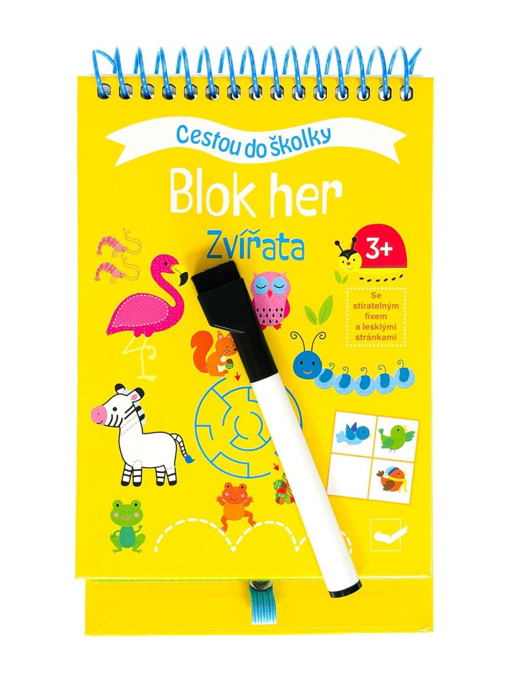 S tímto blokem si děti užijí kreslení, řešení logických řad a procházení bludišť a vyřeší mnoho dalších aktivit. Děti budou překreslovat obrázky, obtahovat linie, spojovat body s čísly či procházet bludištěm. Díky stránkám s lesklým povrchem a stíratelnému fixu s praktickou houbičkou, který je k bloku přiložen, můžou děti všechny úlohy řešit pořád dokola! Řada Cestou do školky představuje dětem hravým způsobem úlohy, které si mohou užít třeba i během krátké chvilky, jako je cesta do školky. Úkoly uzpůsobené věku postupně malé předškoláky rozvíjejí a zabaví.Doplňkové parametry