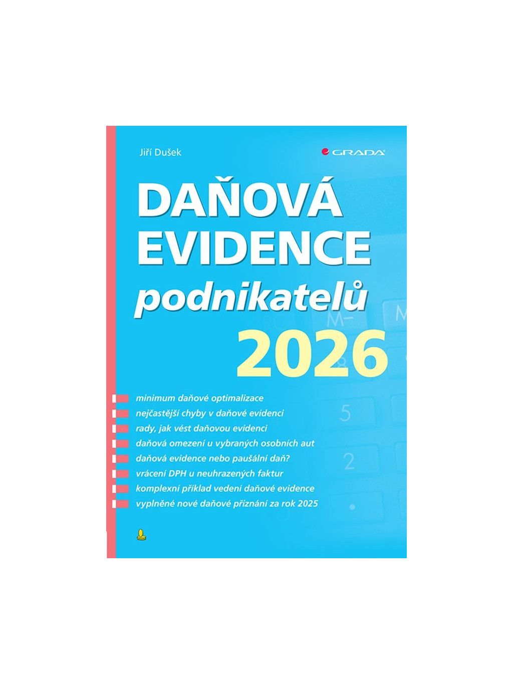 Obsahuje základní přehled nejčastějších chyb v daňové evidenci a přehled uzávěrkových operací. Je vhodná pro zaběhlé podnikatele a živnostníky, ale také pro začínající podnikatele, kteří mají značné výdaje v souvislosti s rozjezdem firmy. Po ruce tak budete mít ke každodennímu využití přehledné minimum daňové optimalizace vhodné pro každého podnikatele. Poslední kapitolou je komplexní příklad a vyplněné vzorové nové daňové přiznání fyzických osob za rok 2025. Knihu oceňují především podnikatelé, účetní a studenti.