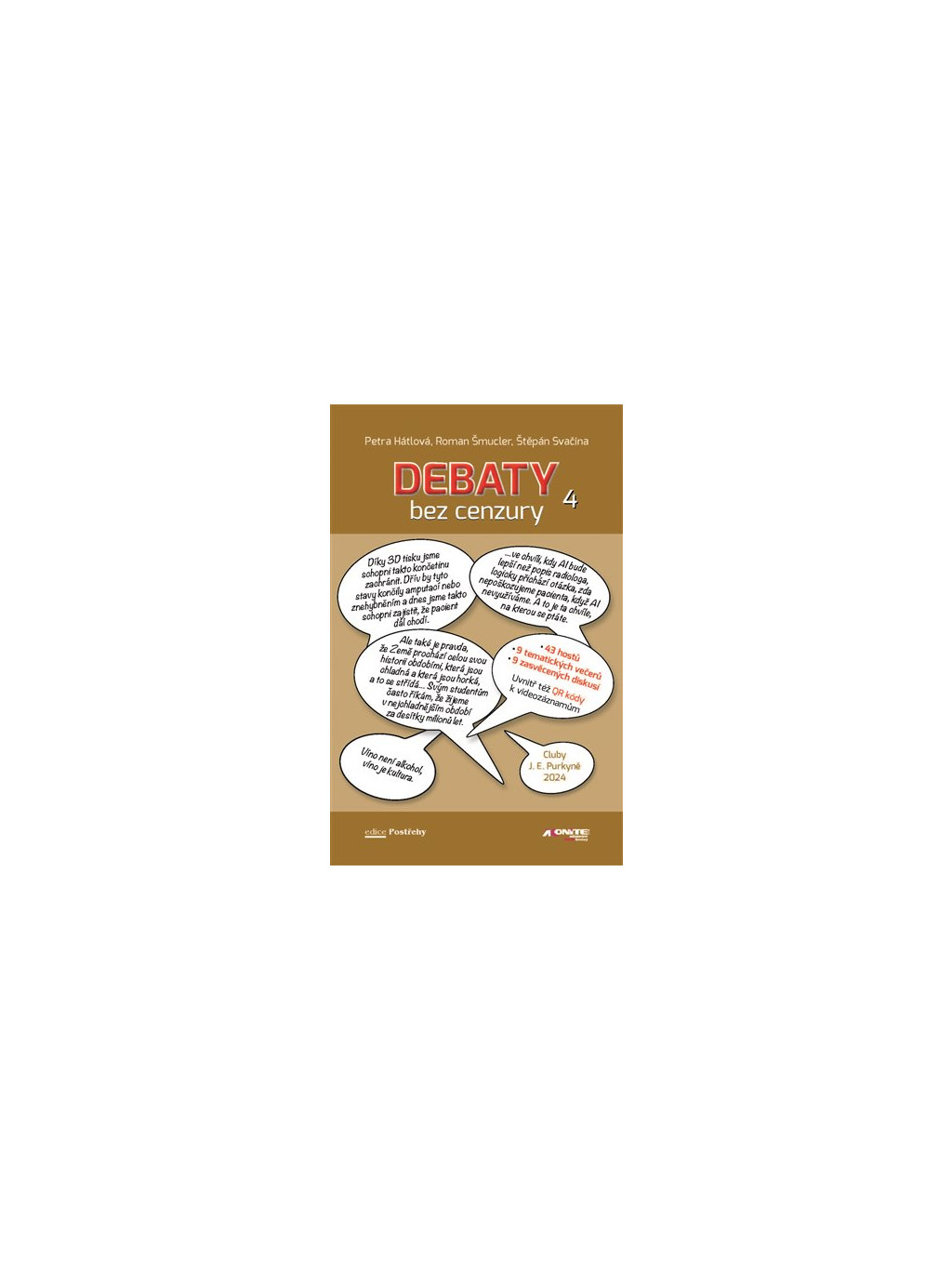 Kolik v sobě máme neandrtálských genů? Jak ovlivní umělá inteligence medicínu? Jaké možnosti nám do budoucna poskytne plastická chirurgie? Jak máme správně užívat antibiotika? Odpovědi na tyto a další otázky přinášejí inspirativní debatní Cluby J. E. Purkyně, které moderují prezident České stomatologické komory doc. Roman Šmucler a předseda České lékařské společnosti J. E. Purkyně prof. Štěpán Svačina. Stejně jako předcházející 3 díly Debat bez cenzury i tento přináší redakčně zpracované záznamy jednotlivých debatních clubů. Díky moderním technologiím lze velmi jednoduše přejít pomocí QR kódů umístěných v knize k videozáznamům těchto debat a umocnit tak zážitek z četby.Doplňkové parametry
