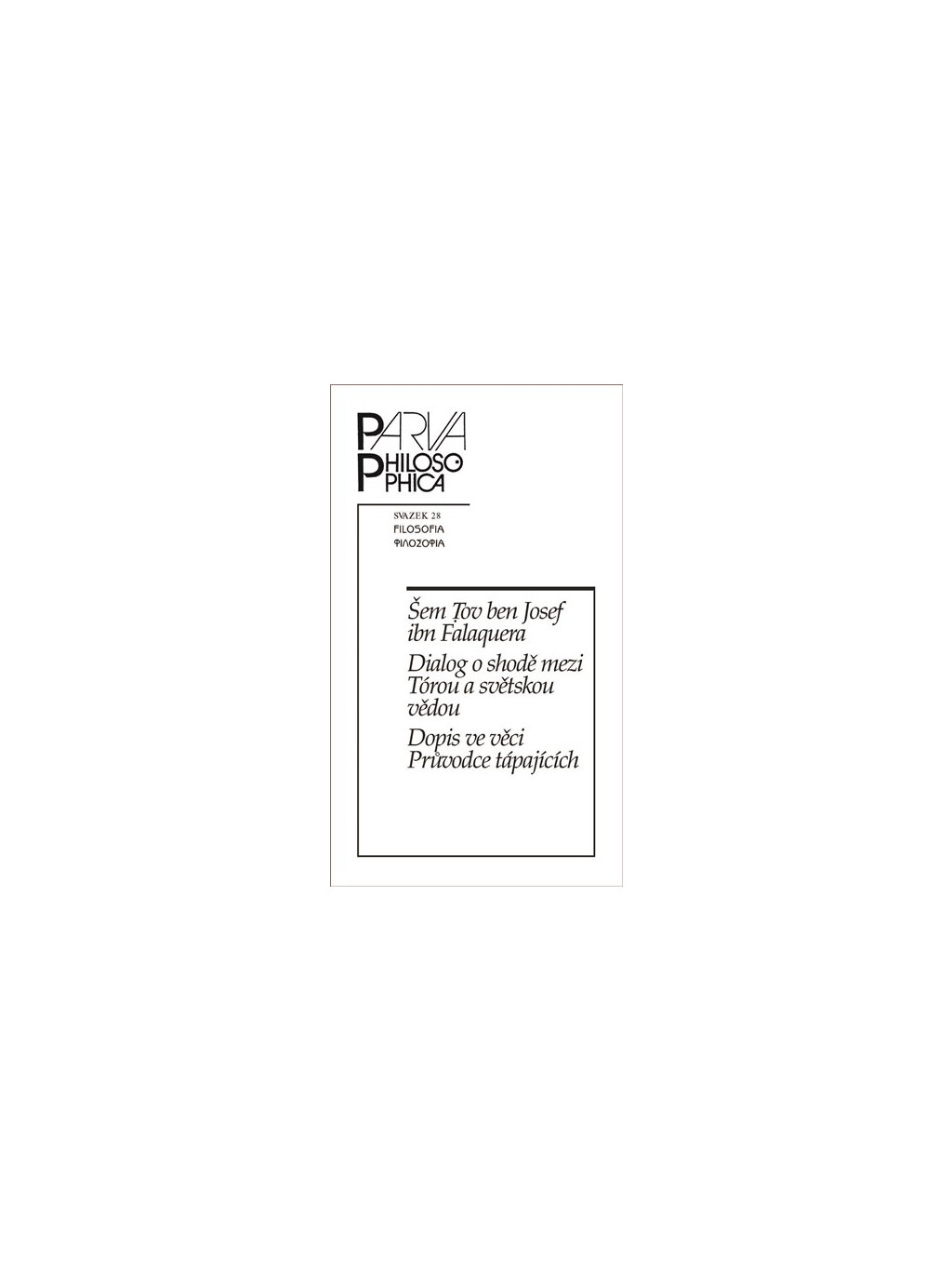 Recepci antické a středověké arabské filosofické tradice provázely v židovských komunitách (podobně jako ve společnosti křesťanské a muslimské) obsáhlé debaty týkající se vztahu rozumu a zjevení, přístupu k interpretaci autoritativních náboženských textů a začlenění filosofických spisů do tradičního vzdělávacího kurikula. Šem Tov ibn Falaquera (kolem 1225-1290), překladatel a autor řady hebrejských spisů popularizujících studium aristotelské filosofie, se do těchto debat aktivně zapojil především dvěma svými spisy: Dialogem o shodě mezi Tórou a světskou vědou, v němž se snaží obhájit filosofii jako legitimní zdroj poznání vedle židovské náboženské tradice, a dopisem, jímž vystoupil na obranu Maimonidova Průvodce tápajících během kontroverze, která se kolem tohoto díla rozpoutala na sklonku 80. let 13. století. Oba texty jsou v této publikaci představeny v českém překladu a zasazeny do kontextu Falaquerova díla a středověkých debat o vztahu mezi judaismem a filosofií.Doplňkové parametry