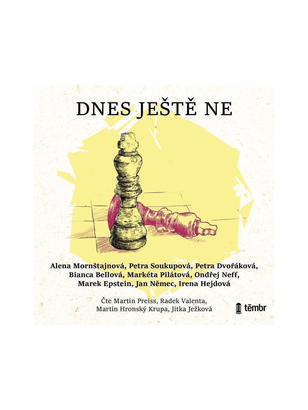 Radomír nemá pocit, že by mu v životě něco scházelo, dokud na šachovém fóru nepotká Jarmilu. Kdežto Milan je na tom přesně naopak – Gábinu sice miluje, ale jeden večer, ten dnešní večer by potřeboval strávit bez ní. Jarek by Annu a jejich dvě děti nejraději neopustil už ani na vteřinu – a nic by neměnil, zatímco rodinu Tomáše čeká úplně nový začátek a namísto života ve městě stará chalupa na venkově. Vypravěč povídky Markéty Pilátové nic měnit nehodlá, ale musí se při čekání na svou laçadoru obrní trpělivostí a také Věře se čekání vyplatí. Kamil jakožto vědec postupuje v milostném životě přísně exaktně, Zuzana překvapuje sama sebe a Viky si odmítá vybírat mezi Jerrym a Vaškem. Dnes ještě ne. brbrInterpret: Martin Preiss, Martin Horský Krupa, Radek Valenta, Jitka JežkovábrRežie: Jan DrbohlavbrDélka nahrávky: 4 h 15 min.br1 MP3 CDbrDoplňkové parametry