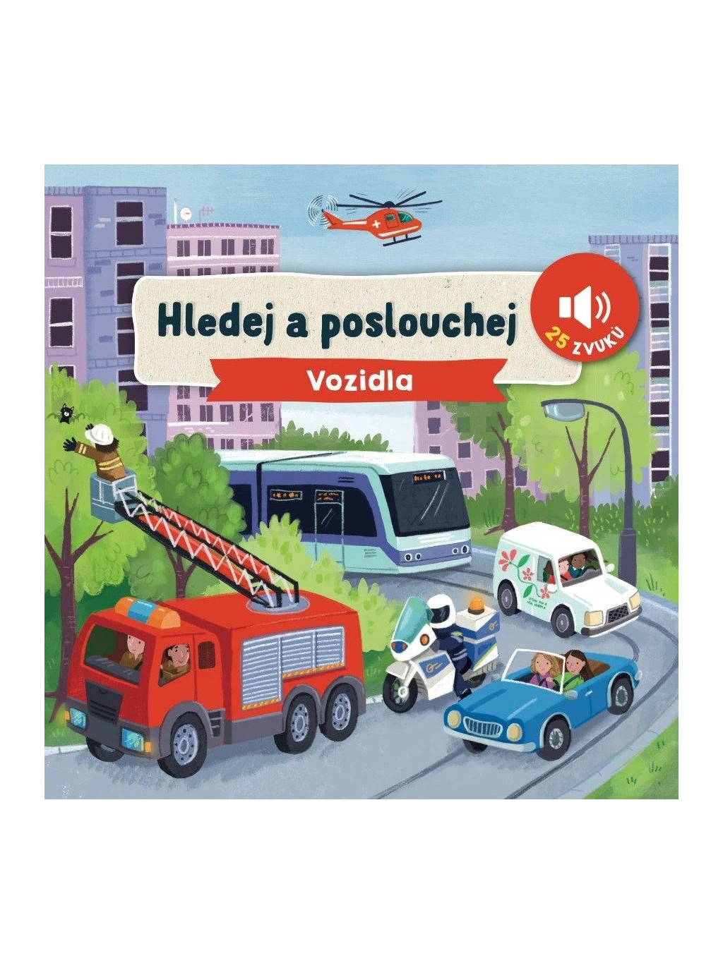 Vítej ve světě vozidel. Poznáš traktor? Víš, jak houká siréna policejního auta? A jak hasičský vůz? Hledej a poznávej vozidla v této zvukové knize s pevnými stránkami v různých prostředích a situacích. Najdi vozidla, stiskni tlačítko a poslechni si zvuk, jaký vydávají. Tato ilustrovaná kniha představí dětem vozidla v různých prostředích a situacích a naučí je rozpoznávat podle zvuků.Doplňkové parametry