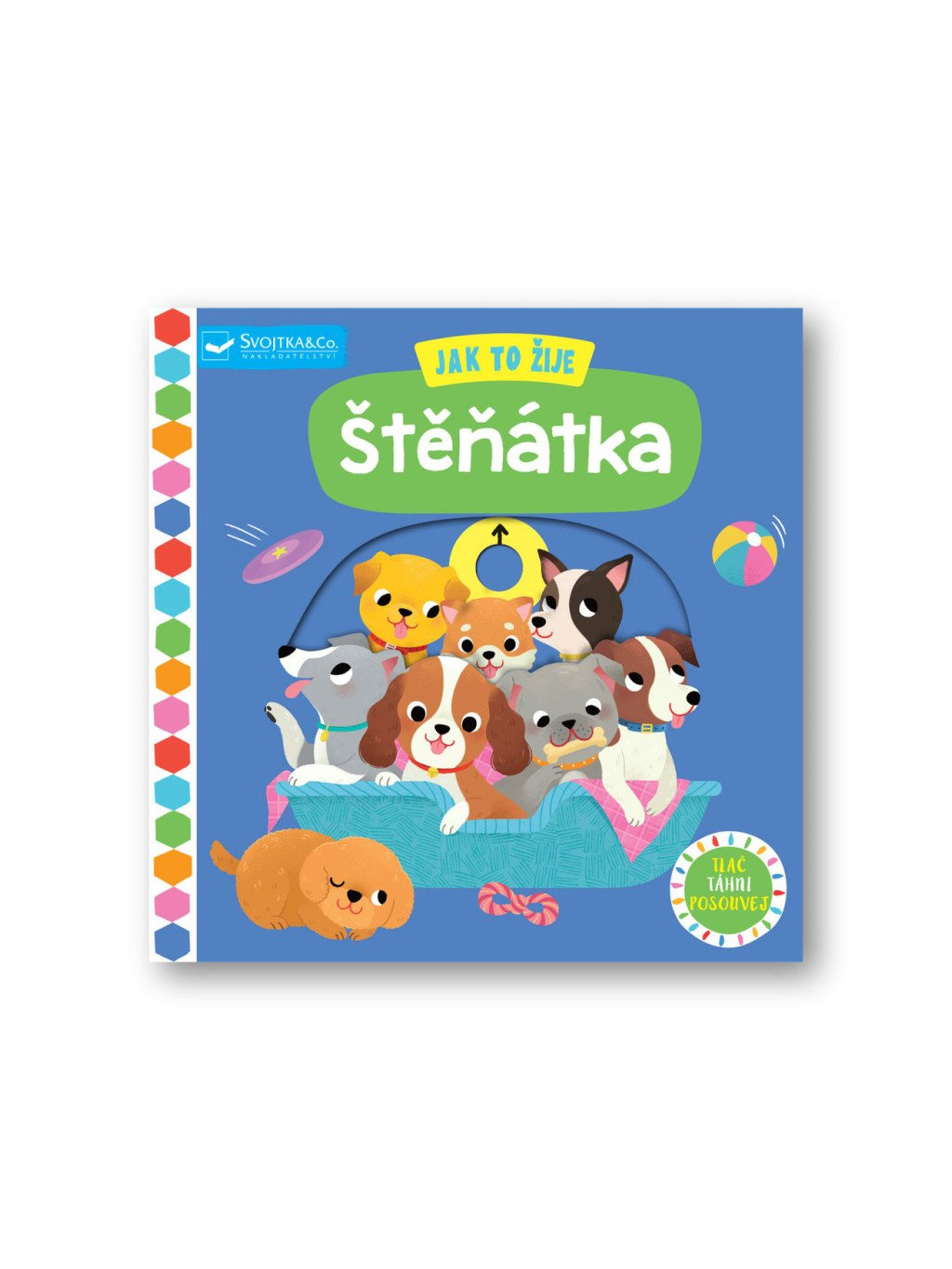 Ve štěněčí školce to žije! Je tu spousta roztomilých štěňátek, která se učí chodit na vodítku, aportovat a sedět na místě. Nahlédni do tohoto leporela plného skotačivých a hravých štěňátek, zjisti, jak jim to jde ve štěněčí školce, a doprovoď je na procházce. Veršovaný příběh o štěňátkách rozvíjí u dětí představivost a rozšiřuje jejich slovní zásobu. Díky pohyblivým prvkům na každé stránce si dítě také procvičí jemnou motoriku.Doplňkové parametry