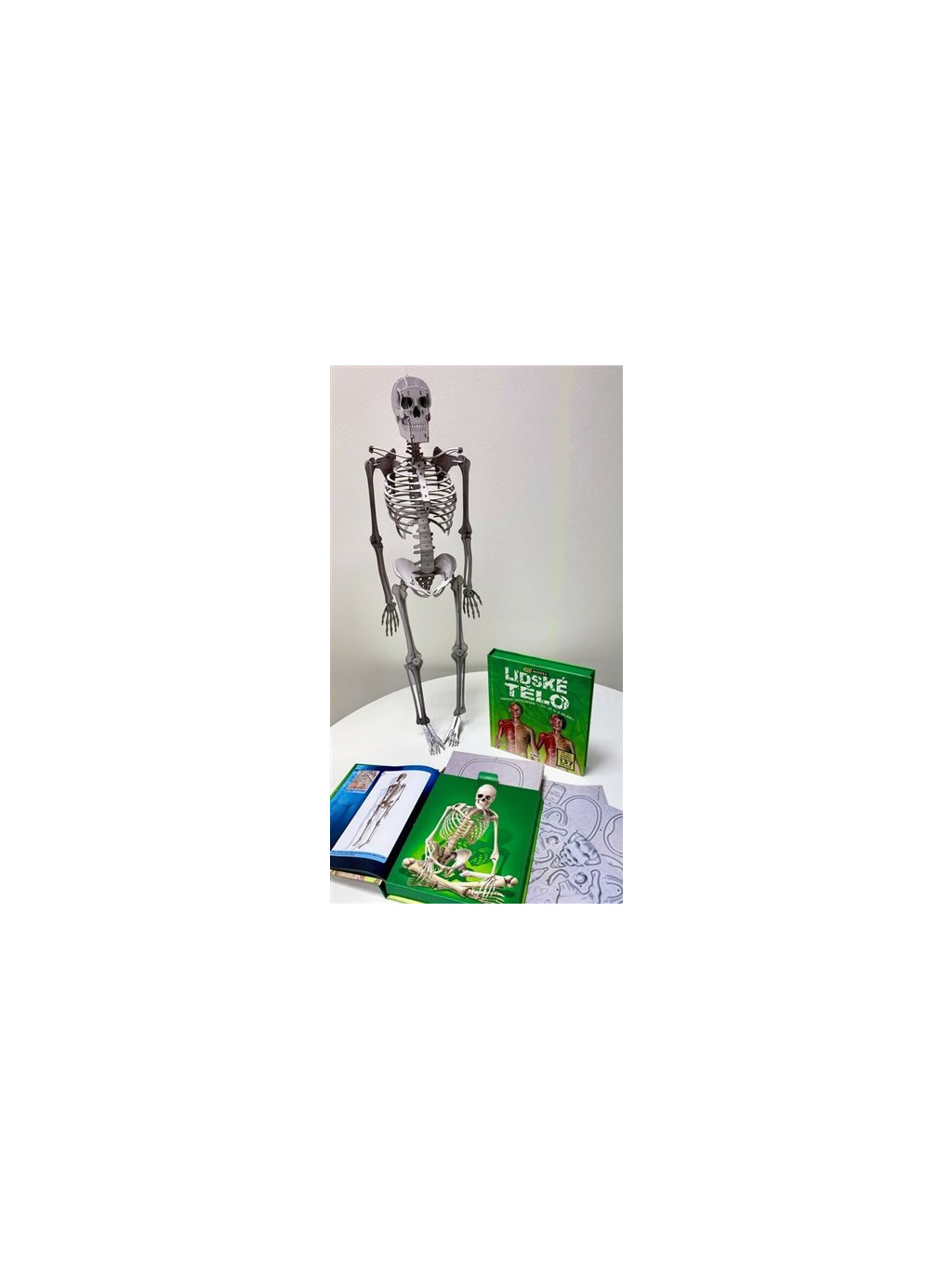 Lidské tělo - 3D Model. Tato encyklopedie je ideální pro malé i velké milovníky encyklopedií a skládaček. Kniha nabízí fascinující informace o lidském těle. Děti se dozví z jakých částí se naše tělo skládá, přečtou si o svalech, o kostech, jak dýcháme, jak funguje náš mozek a spoustu dalších informací. Součástí celobarevné knihy s úžasnými ilustracemi, je také návod na stavbu velkého 3D modelu kostry lidského těla. Papírový model je součástí balení a se skládá ze 137 pevných kartonových dílků a dosahuje délky 80 cm. Model lze postavit bez použití nůžek nebo lepidla, což zajišťuje spoustu zábavy pro děti i dospělé. Doporučujeme věk od deseti let pro stavbu modelu. ( případně i dříve při pomoci při stavbě dospělými ). Tato kniha je perfektní pro všechny, kteří se rádi učí novým věcem a skládají modely.Doplňkové parametry