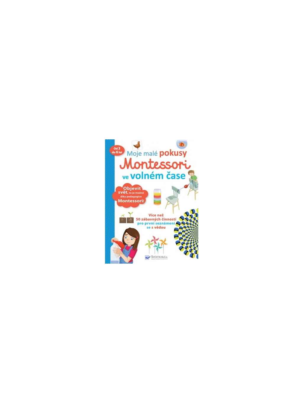 Volný čas, jako jsou nejrůznější školní prázdniny, volna, svátky a víkendy, je velice cenný během něj lze v dětech vzbudit zvědavost, objevovat s nimi okolní přírodu a podněcovat je k učenlivosti. Být samostatnější, získat sebedůvěru, naučit se pozornosti a procvičit jemnou motoriku lze díky tomuto sešitu Montessori zábavnou formou. Díky sešitu Moje malé pokusy Montessori se vaše dítě seznámí s fyzikálními, optickými, biologickými a chemickými jevy a názorně si vyzkouší optické klamy, statickou elektřinu a další. Bude provádět opravdové vědecké pokusy s každodenními ingrediencemi a předměty (vejci, mlékem, izolepou, balonky atd.). Vyrobí si papírový vrtulník, vytvoří tornádo v lahvi s vodou. Zábavné učení začíná s tímto sešitem Montessori!Doplňkové parametry