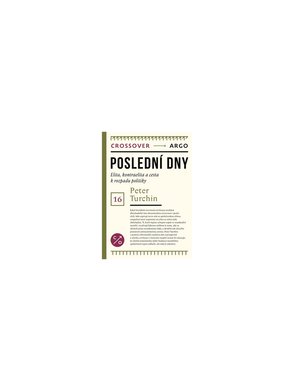 Předpovědi brzkého kolapsu neodmyslitelně patří k životu každé civilizace, možnost pracovat s velkými daty dodala těmto předpovědím vědečtější základ. Peter Turchin se s pomocí ohromného souboru dat o prosperitě a zániku společností v časovém rozpětí 10 000 let ("od Horního Egypta po Dolní Manhattan") pokouší objevit statistické vzorce, které ukazují, kde mají lidské civilizace v éře měst a států zabudovány mechanismy vlastní destrukce. Dva z nich jsou klíčové a komplementárně se doplňují. Pokud se totiž k rostoucí nerovnosti bohatství přidá i nadprodukce potenciálních elit, celospolečenské snahy stát se bohatou elitou jsou stále zběsilejší. Frustrovaní aspiranti na elitu poté využívají lidovou nelibost k tomu, aby se obrátili proti zavedenému řádu.Autor současně stále doufá, že komplexní matematika může budoucí nestabilitu společností nejen odhalit, ale také jí zabránit.