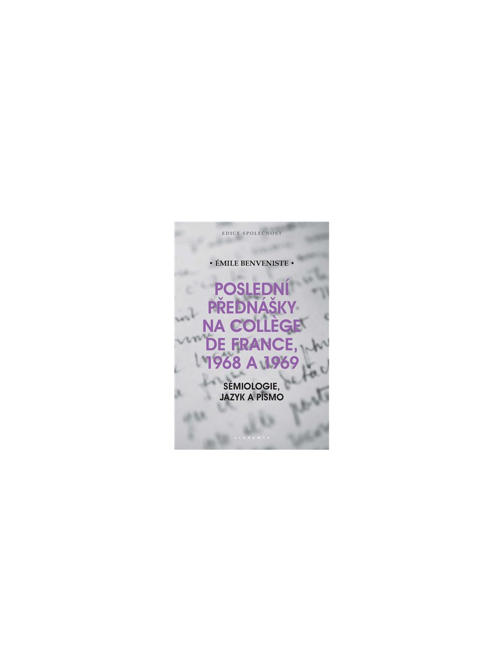 V roce 1969 přednášel francouzský lingvista Émile Benveniste na College de France naposledy. Na začátku zimního semestru onemocněl tak těžce, že se nemohl dál věnovat ani teorii řeči a základům teorie písma, na nichž v té době pracoval, ani své pedagogické práci. Jeho poznámky k poslednímu kurzu, doplněné a upřesněné díky dochovaným zápiskům studentů, tvoří hlavní část této posmrtně vydané knihy. Ve své teorii řeči Benveniste proti sobě klade obecné významy slov, jež sdílíme jako mluvčí nějakého jazyka, a jedinečný smysl výpovědi, který vždy vzniká přetavením těchto obecných významů v rámci konkrétní mluvní situace. Autorova teorie písma se opírá o jeho výzkum rozmanitých systémů psaní, jak se ustavily v odlišných kulturách. Benveniste tvrdí, že písmo původně odkazovalo přímo k věcem a že v zápis mluvy se proměnilo až poté, co vynálezci písma začali v živé mluvě rozlišovat opakující se prvky jazyka. Benvenistovy přednášky představují důležitý pramen pro lingvisty, sémiology, filozofy jazyka i literární vědce, ovšem díky autorovu průzračnému stylu jsou snadno dostupné i čtenářům, kteří nejsou v uvedených oborech zběhlí.Text Posledních přednášek doplňuje úvodní studie Tzvetana Todorova a doslov Julie Kristevy.
