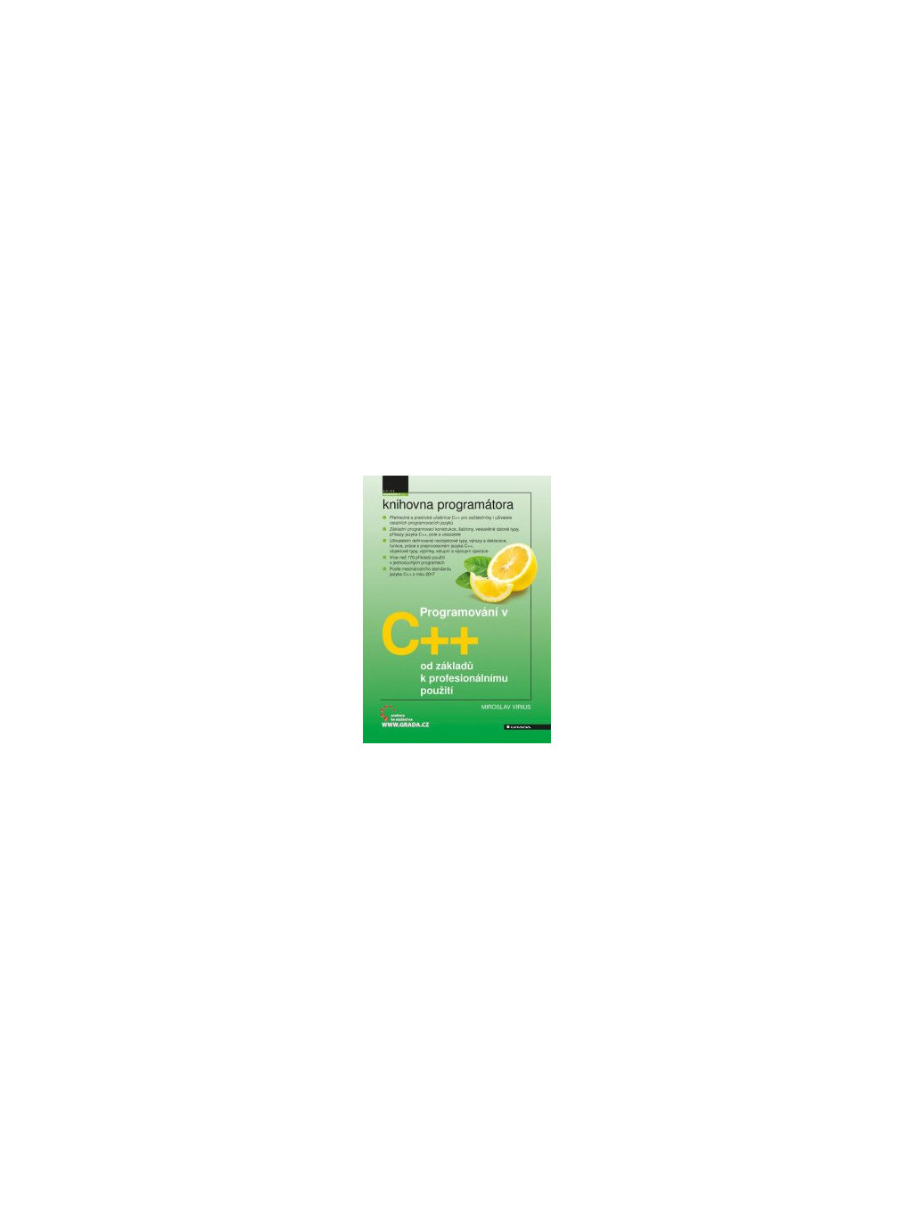 „Jediným způsobem, jak se naučit nějaký programovací jazyk, je psát v něm programy.“ Zkušený autor se tohoto hesla drží i ve své nejnovější knize, která poslouží jako brána do světa programovacího jazyka C++ širokému okruhu zájemců: mohou s ní pracovat úplní začátečníci i ti, kteří již v nějakém jazyce programují a potřebují se posunout dále. Hned po vysvětlení základních pojmů se začíná programovat „naostro“: vytvoříte si první program, naučíte se ho přeložit, spustit a odladit. V jedenadvaceti kapitolách se pak seznámíte s celou řadou témat: s objektovým programováním, základními programovacími konstrukcemi, šablonami, vestavěnými datovými typy, příkazy jazyka C++, poli a ukazateli. Následují uživatelem definované neobjektové typy, výrazy a deklarace, funkce, práce s preprocesorem jazyka C++, objektové typy, výjimky, vstupní a výstupní operace. Všechny nabyté znalosti si okamžitě vyzkoušíte v praxi na krátkých, jednoduchých a názorných příkladech (v knize jich je více než 170) – nehrozí tedy nebezpečí, že by čtenář zabloudil v teoretickém výkladu a nedokázal aplikovat získané znalosti v praxi. Programy, s nimiž se v knize pracuje, jsou k dispozici ke stažení na internetu. Výklad přihlíží k poslednímu mezinárodnímu standardu jazyka C++ z roku 2017.Doplňkové parametry