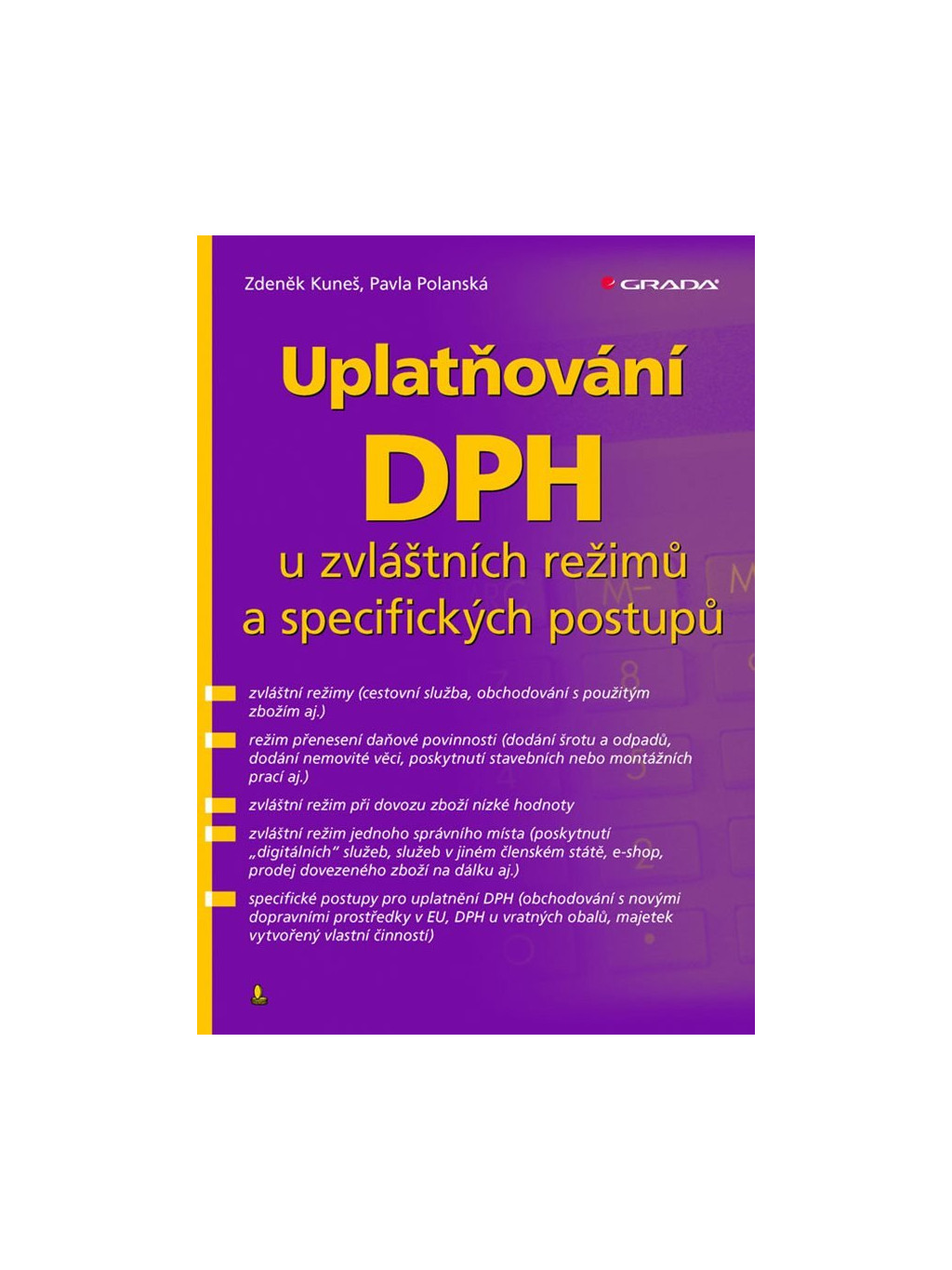 Kniha je určena pro všechny plátce, kteří při uplatňování DPH nepostupují podle běžného režimu, ale používají pro uplatnění DPH zvláštní režimy. Jsou to např. obchodníci s použitým zbožím, uměleckými díly, sběratelskými předměty a starožitnostmi nebo poskytovatelé stavebních nebo montážních prací. Dále je kniha určena pro plátce, kteří poskytují cestovní služby. Vzhledem k důležitým změnám v uplatnění DPH u cestovních služeb od 1. ledna 2022 je v knize uveden nejen postup pro uplatňování DPH do konce roku 2021, ale na příkladech je vysvětlen také postup od 1. ledna 2022. Z důvodu změn vyvolaných novelizací směrnice Rady 2006/112/ES ze dne 28. listopadu 2006 o společném systému daně z přidané hodnoty jsou v knize vysvětleny nové postupy pro uplatnění daně u zvláštního režimu jednoho správního místa. Kniha je tak určena pro plátce nebo identifikované osoby, kteří prodávají zboží přeshraničně prostřednictvím internetu (e-shop). Je zde vysvětlen nový postup pro uplatnění DPH při přeshraničním prodeji zboží na dálku, především nové stanovení limitu 10 000 EUR a možné použití režimu Evropské unie. Dále jsou uvedeny změny pro uplatnění DPH v případě služeb poskytovaných konečným spotřebitelům v rámci EU, například poskytnutí služeb vztahujících se k nemovité věci s místem plnění v jiném členském státě (stavební nebo montážní práce) osobě nepovinné k dani (soukromá osoba), nebo poskytnutí přepravní služby občanům a další. Je také vysvětlen postup při použití režimu Evropské unie provozovatelem elektronického rozhraní, kterým se rozumí například e-shop prodávající zboží třetích stran. V návaznosti na zrušení osvobození od daně při dovozu zboží do hodnoty 22 EUR dochází k zavedení režimu při dovozu zboží nízké hodnoty, který je v knize také popsán. Kniha slouží také těm plátcům, kteří používají specifické postupy například při obchodování s novými dopravními prostředky mezi členskými státy, vratnými obaly nebo plátcům, kteří vytváří majetek vlastní činností.Doplňkové parametry