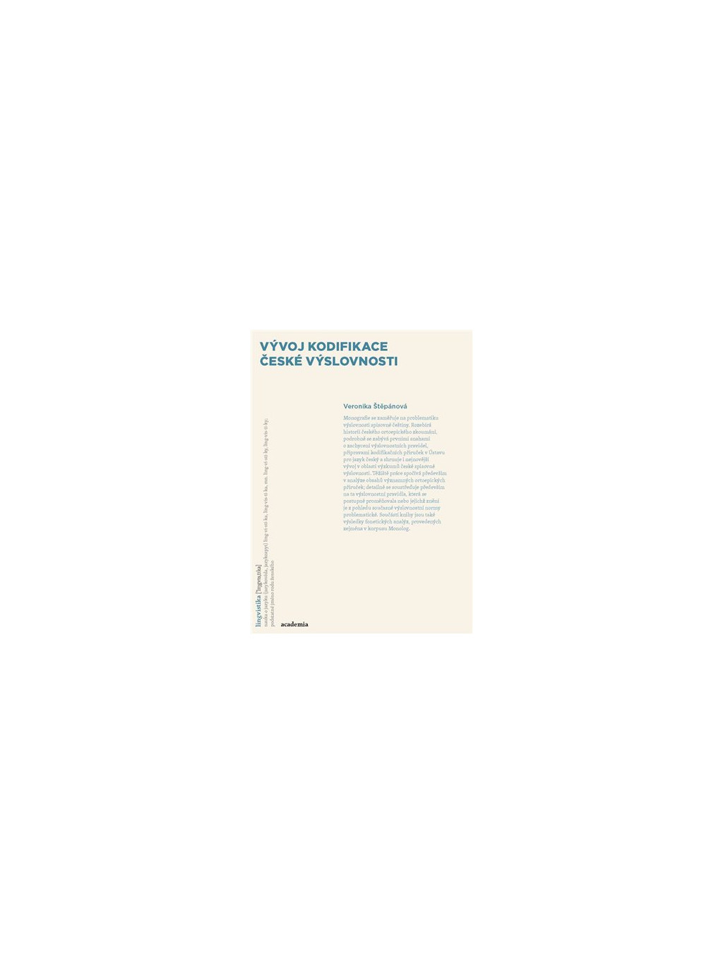 Monografie se zaměřuje na problematiku výslovnosti spisovné češtiny. Rozebírá historii českého ortoepického zkoumání, podrobně se zabývá prvními snahami o zachycení výslovnostních pravidel, přípravami kodifikačních příruček v Ústavu pro jazyk český a shrnuje i nejnovější vývoj v oblasti výzkumů české spisovné výslovnosti. Těžiště práce spočívá především v analýze obsahů významných ortoepických příruček; detailně se soustřeďuje především na ta výslovnostní pravidla, která se postupně proměňovala nebo jejichž znění je z pohledu současné výslovnostní normy problematické. Součástí knihy jsou také výsledky fonetických analýz, provedených zejména v korpusu Monolog.Doplňkové parametry