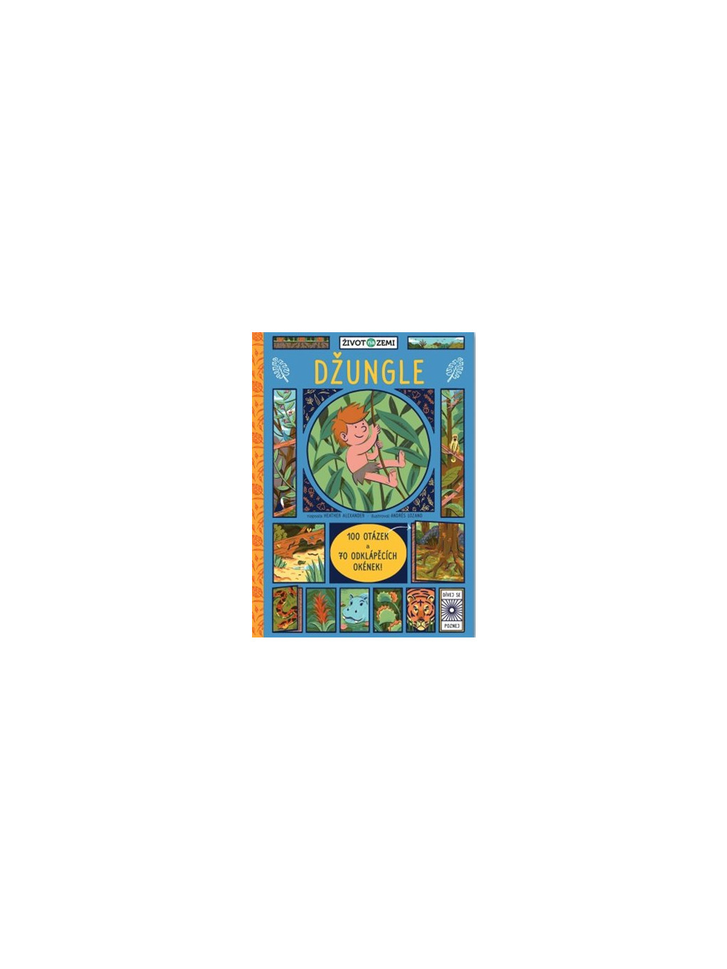 Zajímá tě, jak vypadá život v džungli? Tato interaktivní kniha obsahuje 100 otázek o džungli a jejích obyvatelích, většina odpovědí se skrývá pod odklápěcími okénky. Proč mravenci střihači nosí na zádech listy? Má stonožka skutečně sto nohou? Jak vypadá ruka šimpanze? A jak je možné, že se kolibřík dokáže vznášet na jednom místě? Odklop okénko a přečti si odpověď. V knize zjistíš, jaké zvíře je v džungli nejrozšířenější, která zvířata žijí v korunách stromů, jak rychle roste bambus, který tropický deštný les je největší nebo jak džungle přispívá medicíně. Dozvíš se také spoustu zajímavých věcí o lidoopech a opicích a o tom, jak se zvířata v džungli umí maskovat. Dokážeš je v ilustracích najít?Doplňkové parametry